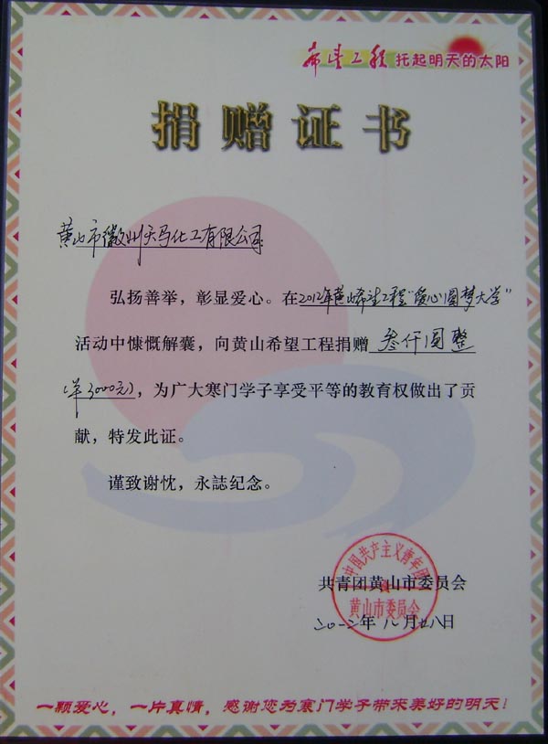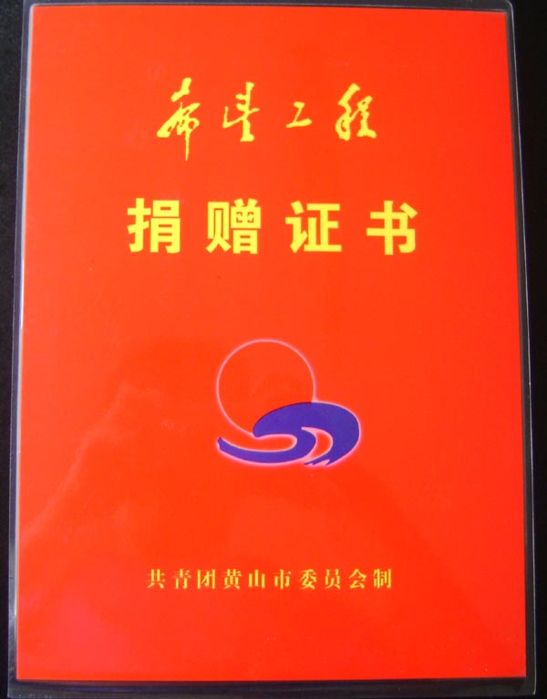 希望工程捐贈(zèng)證書2